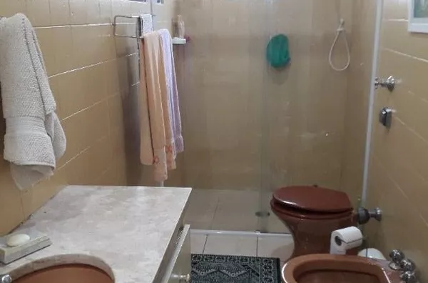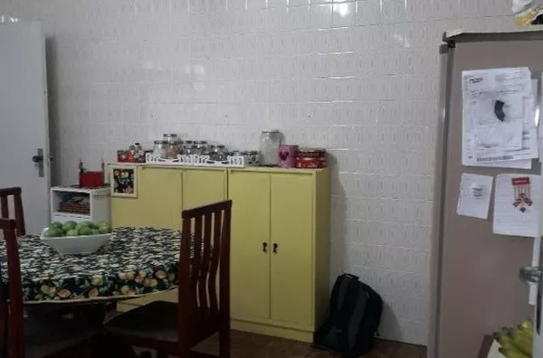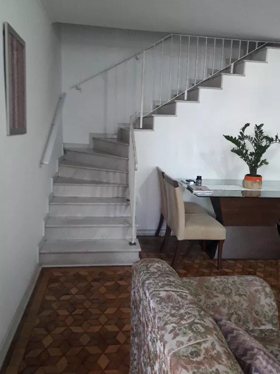 Sobrando antigo de construção sólida e cômodos grandes. Na parte inferior o imóvel acomoda até dois carros na garagem, ampla sala com piso taco estilo português e escada de mármore que conduz ao pavimento superior, lavabo, escritório com armários sob medida, cozinha de 20m² com armários e área de serviço. No pavimento superior estão distribuídos os três quartos, banheiro e escritório conjugado com um dos quartos e entrada social que liga ao quintal da casa.